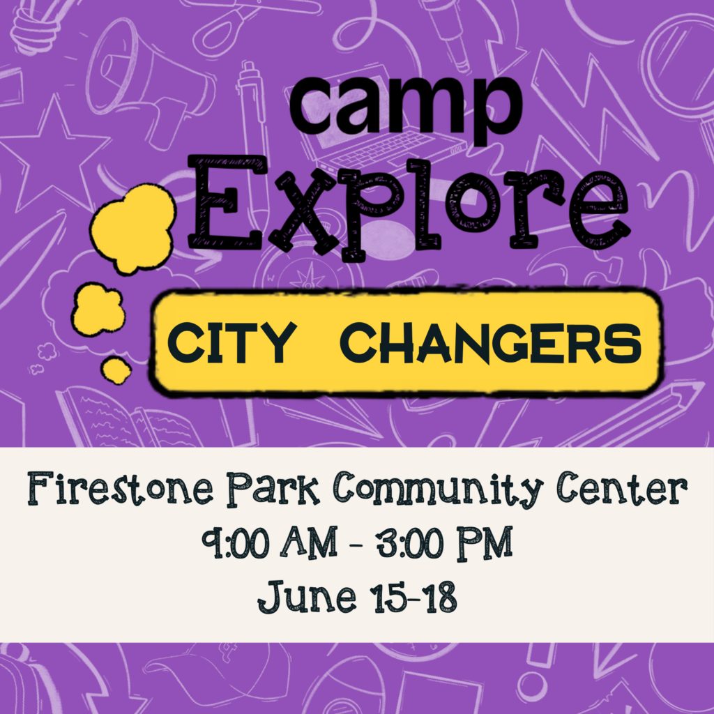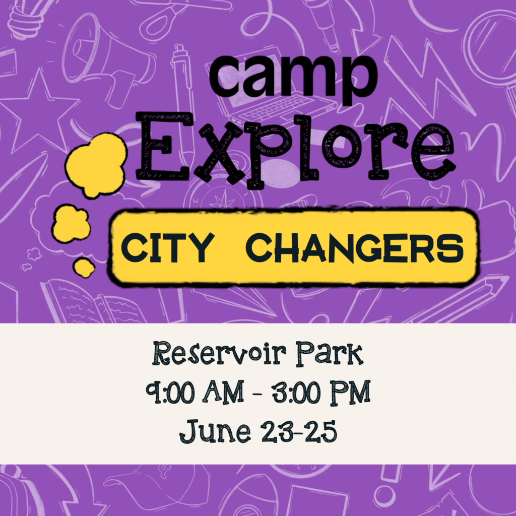 Campers will explore the community by going on Field Discovery Labs to area organizations and businesses. They’ll have lunch from local restaurants, play lots of games and make friends, and spend time learning how to create ideas for the community.